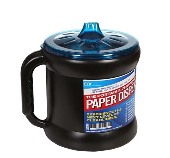 - Portable dispenser designed for quick access to centrefeed rolls, allowing fast response to spills and everyday clean-up tasks across multiple work areas