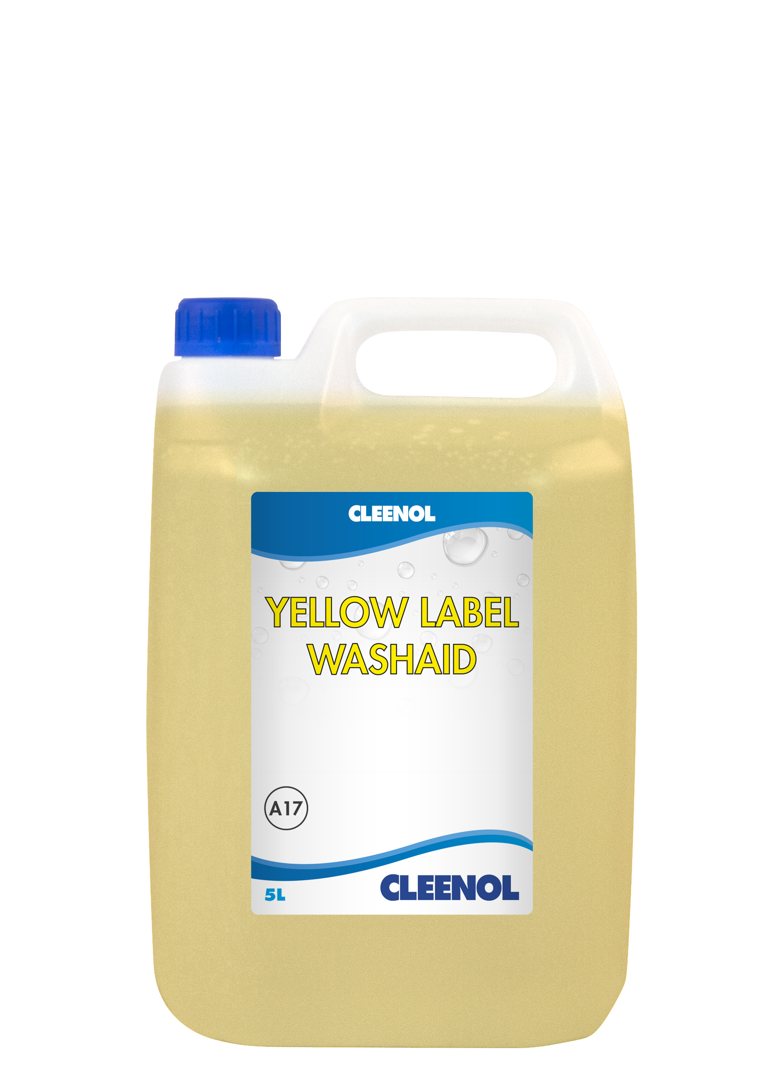 Cleenol Washaid Yellow Label Yellow Label Washaid – 5 Litres Formulated to maintain the performance of the wash but without a “corrosive” classification. This low alkaline product is especially useful in septic tanks as it has minimal impact on the bacterial cultures. Suitable for the washing of crockery, cutlery and glassware. The product is designed for use only with Cleenol automatic dosing systems.