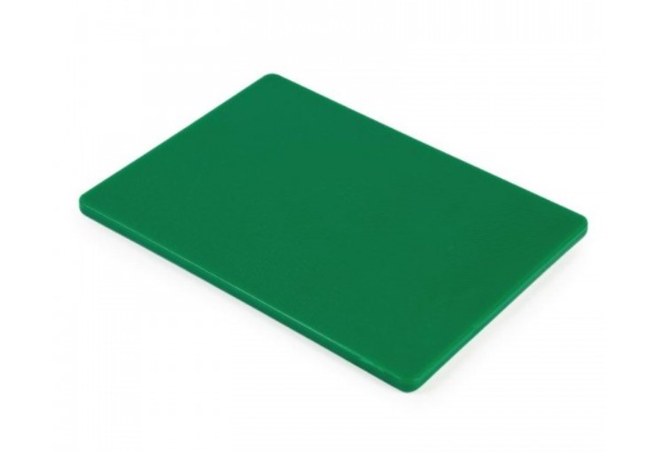 - This Hygiplas chopping board is colour-coded green indicating that it is typically used for prepping salads and fruits