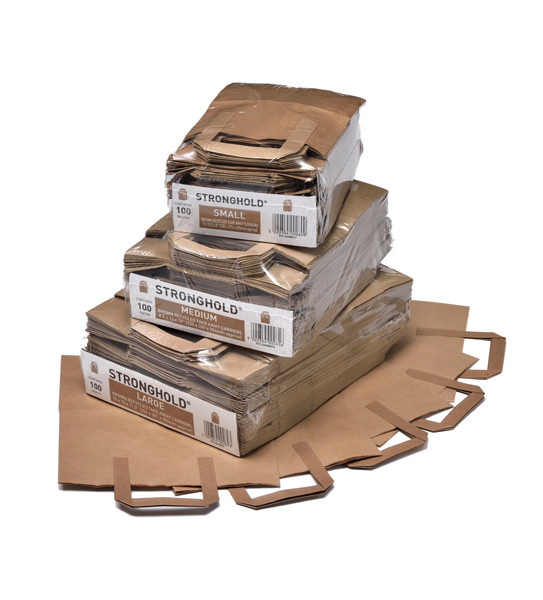 Strong quality carrier bags – made from strong brown kraft paper including reinforced handles and a block bottom base